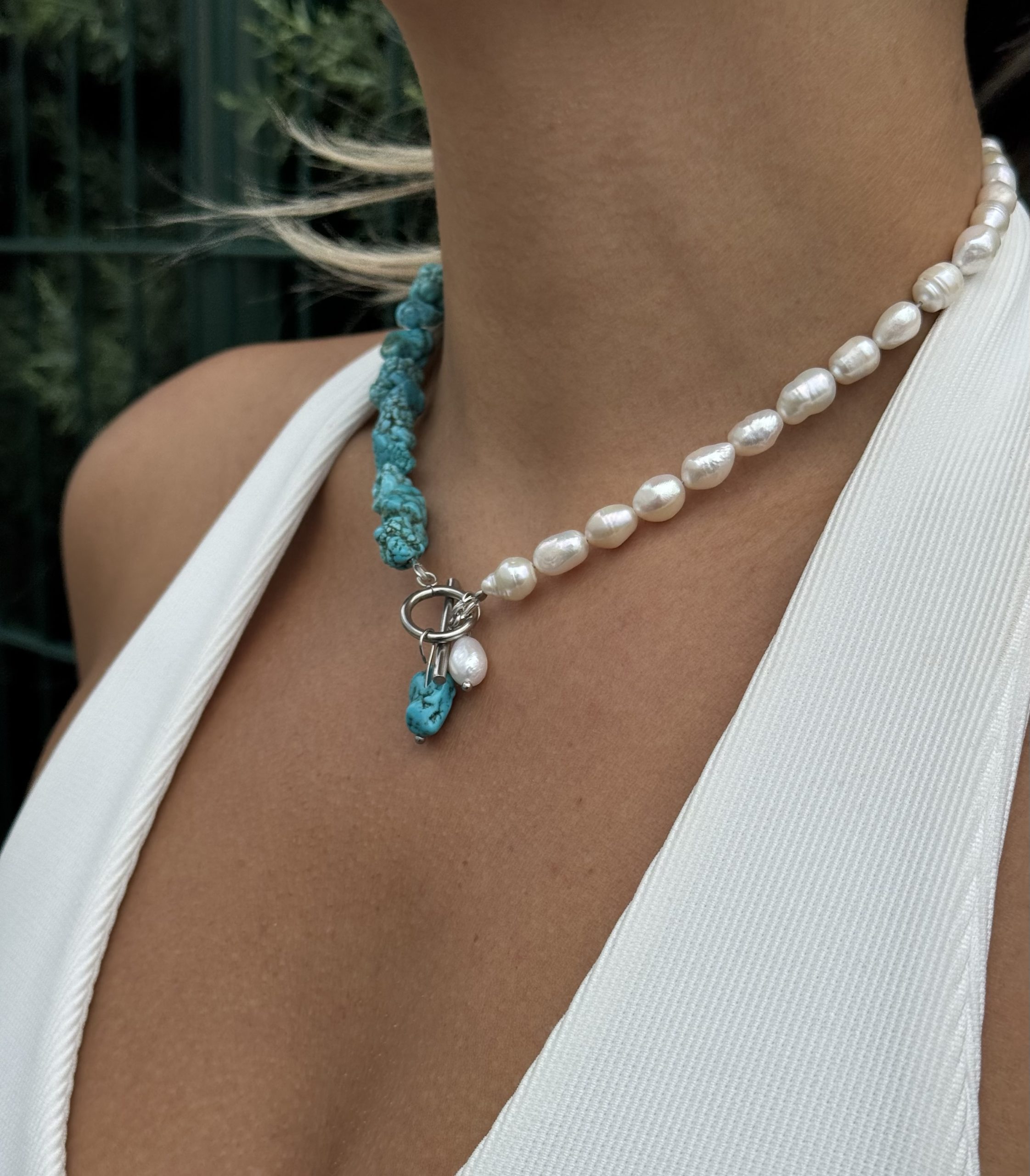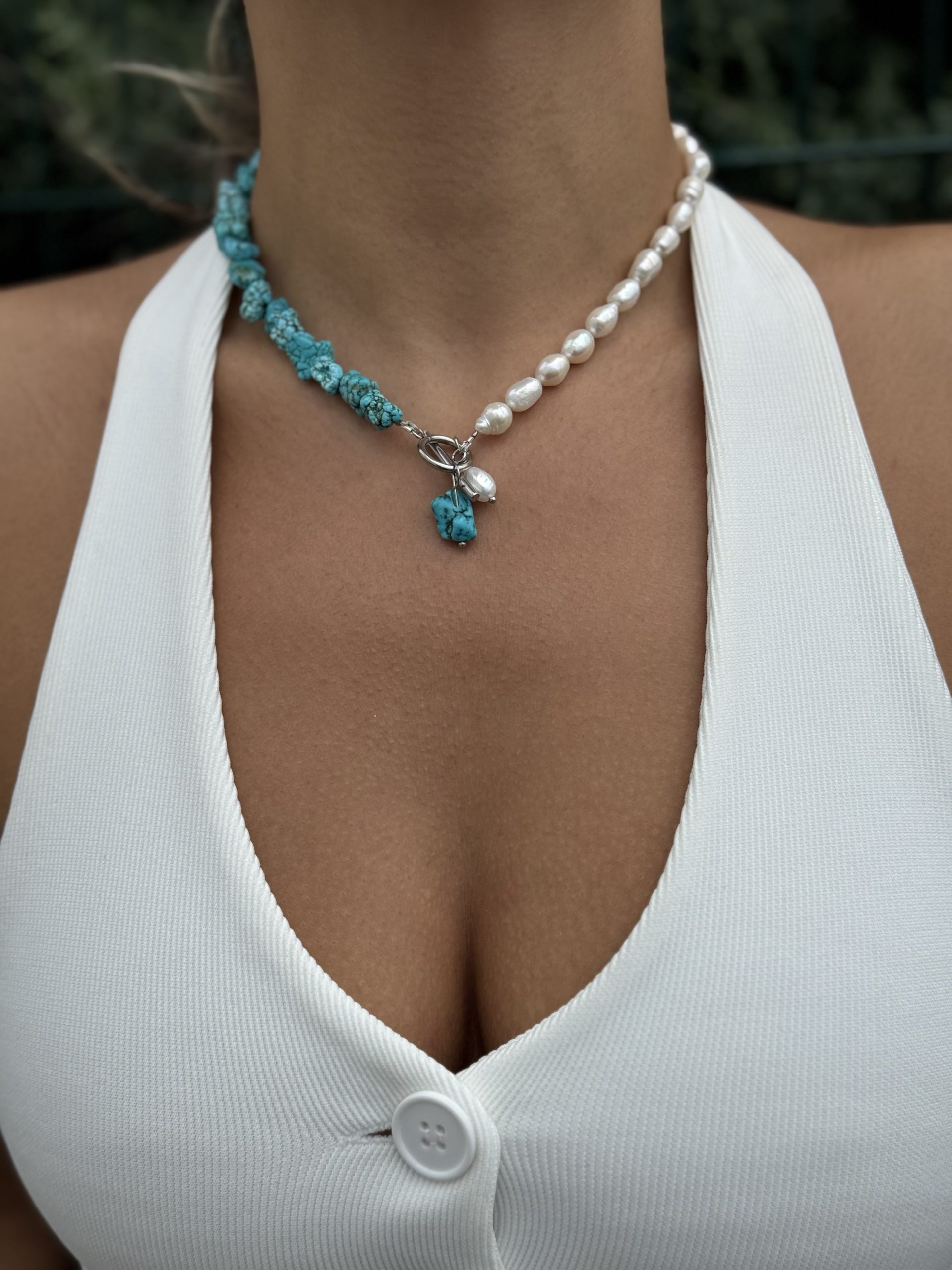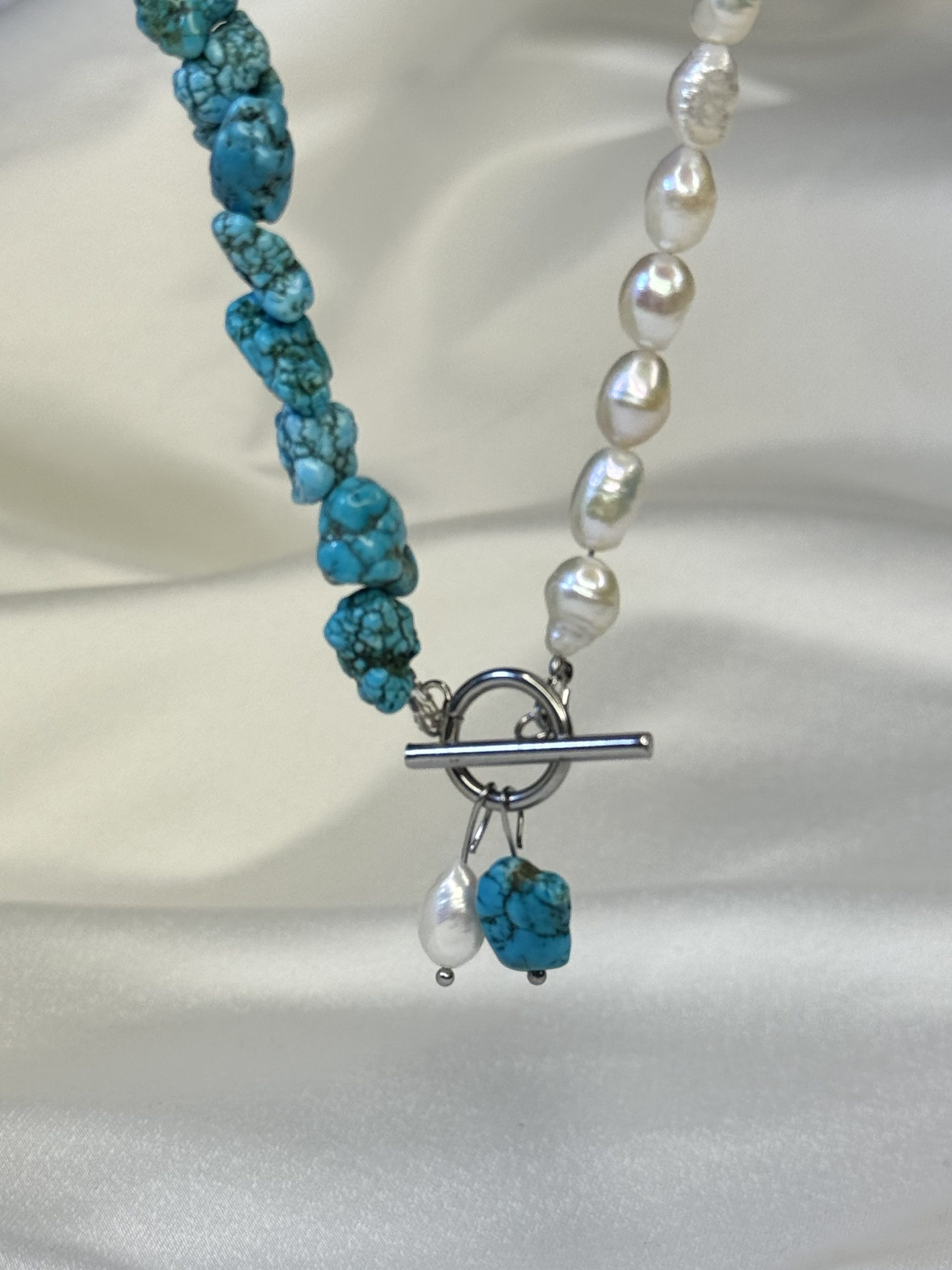 მასალა – მდინარის მარგალიტი, ფირუზი