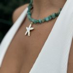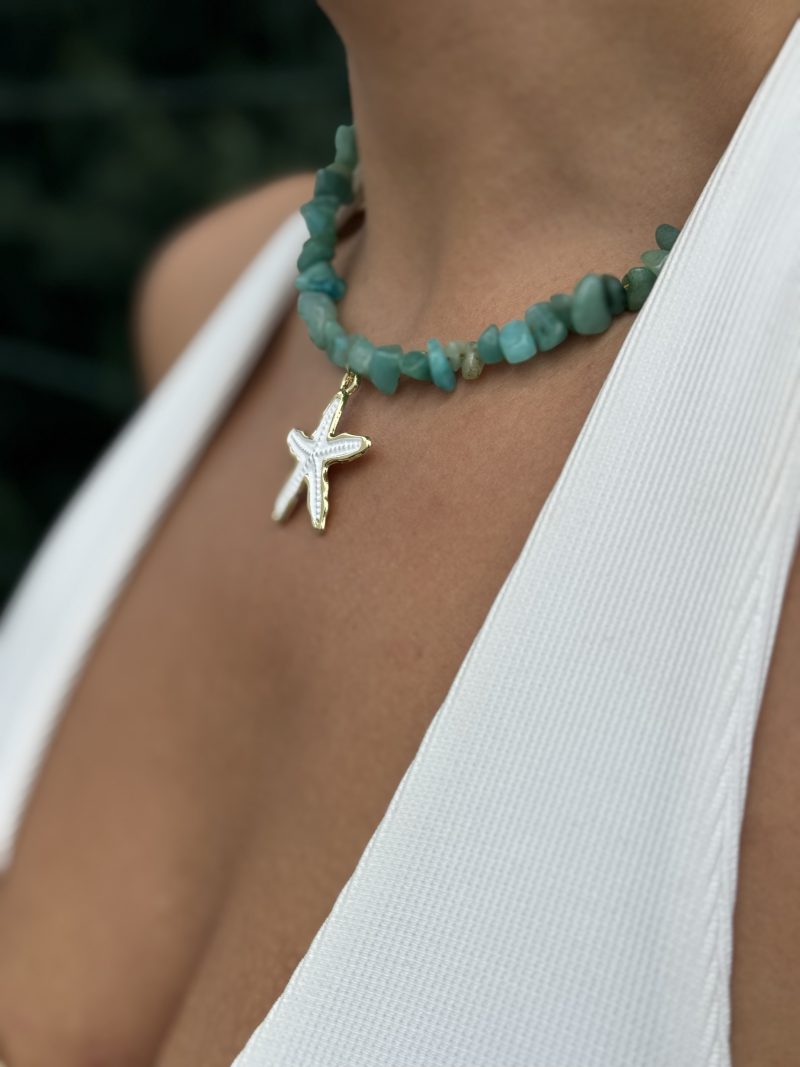 აქატის ყელსაბამი ფოლადის ვარსკვლავით.