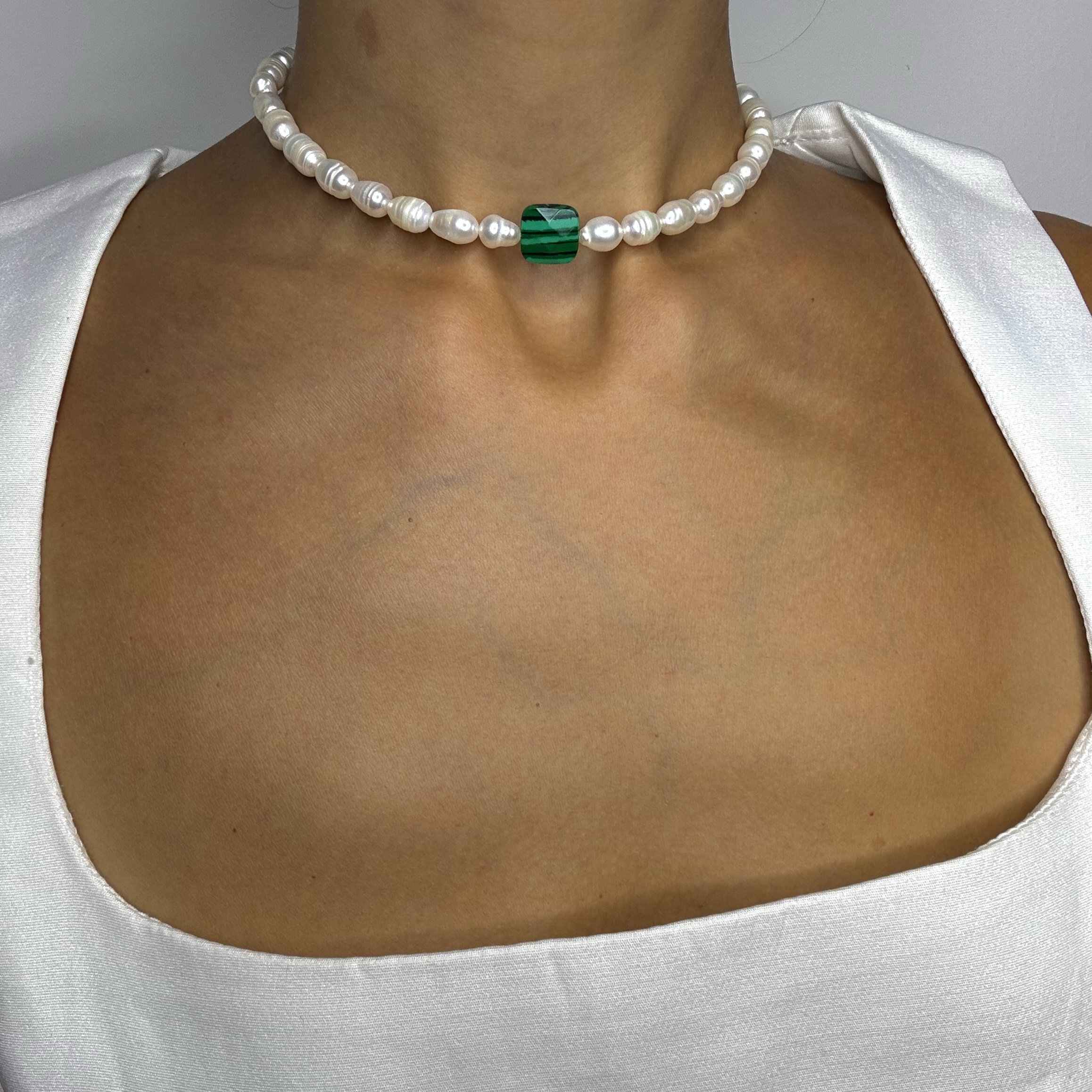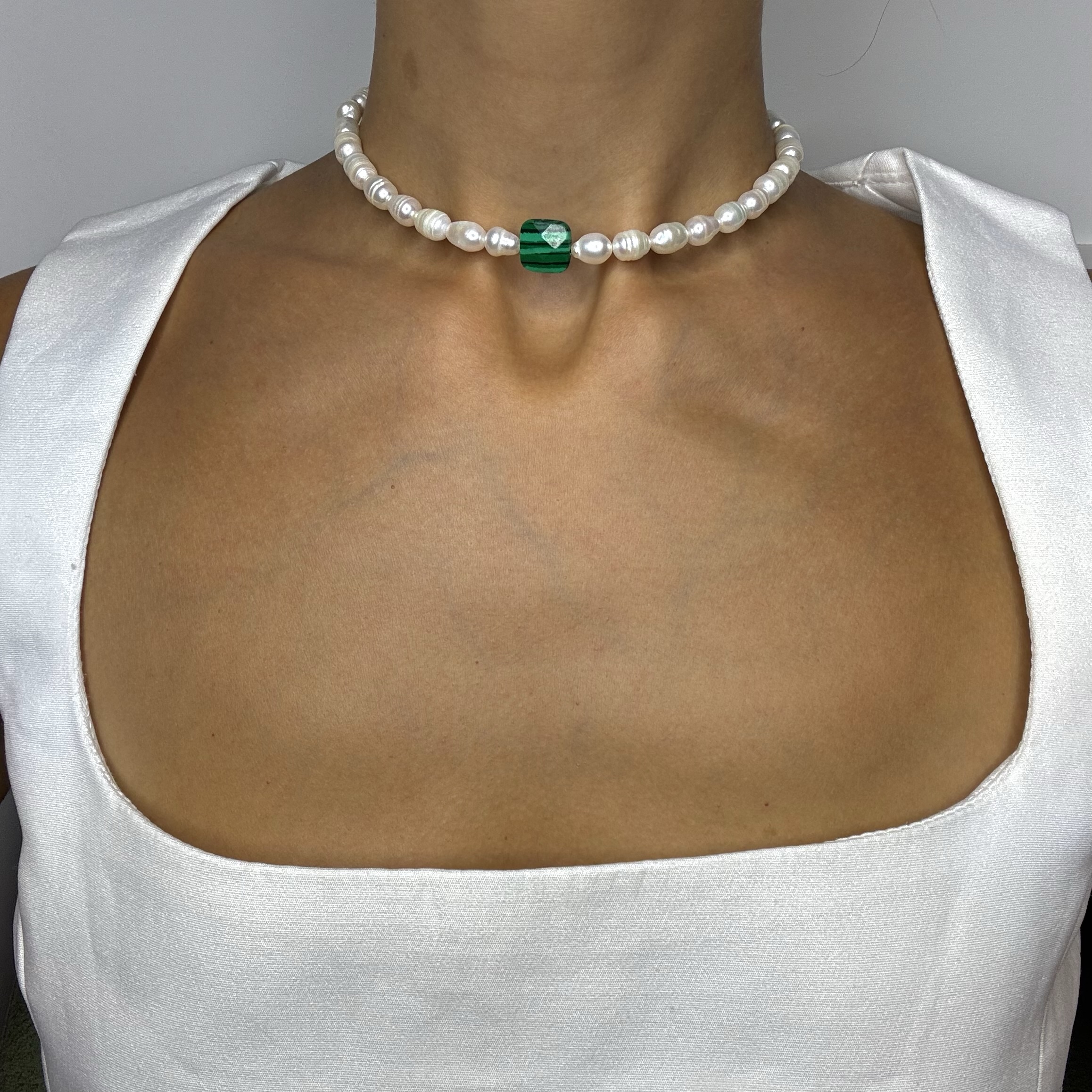 მასალა – მდინარის მარგალიტი, მალაქიტი