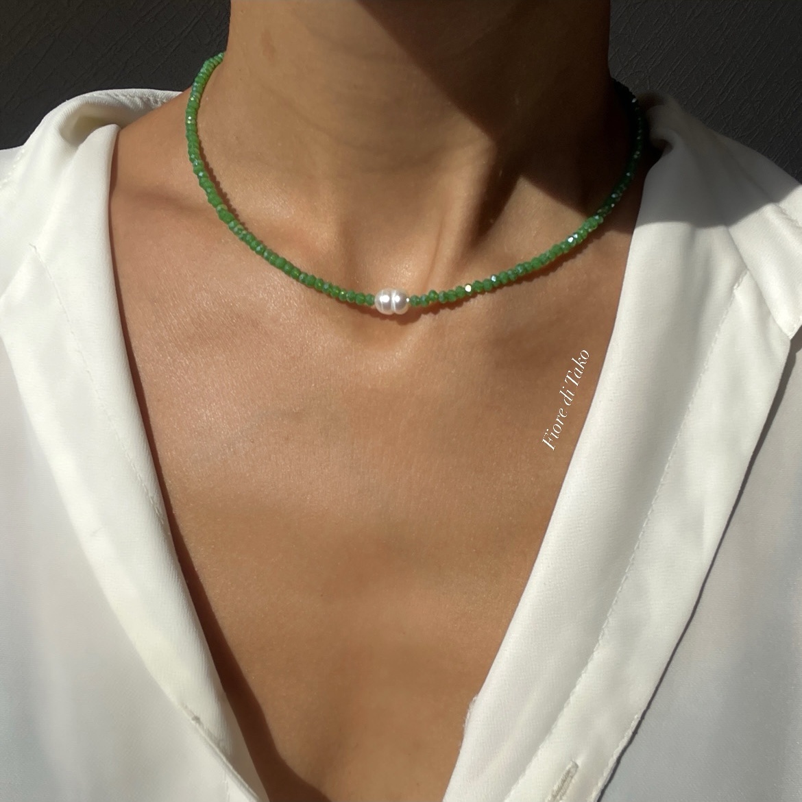 მასალა – კრისტალი, მდინარის მარგალიტი, ანტიალერგიული შესაკრავი, ფერის დაცვით