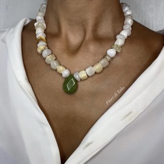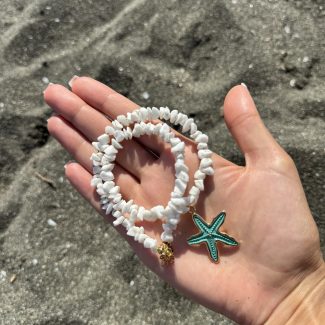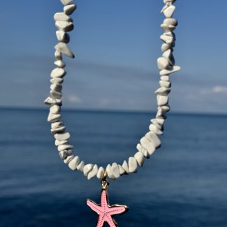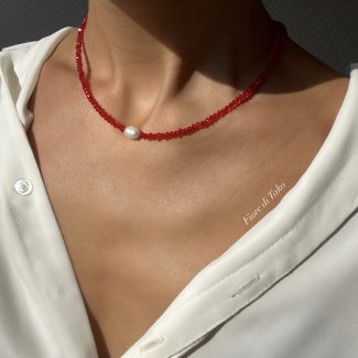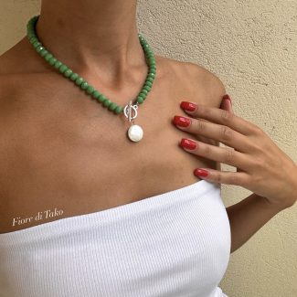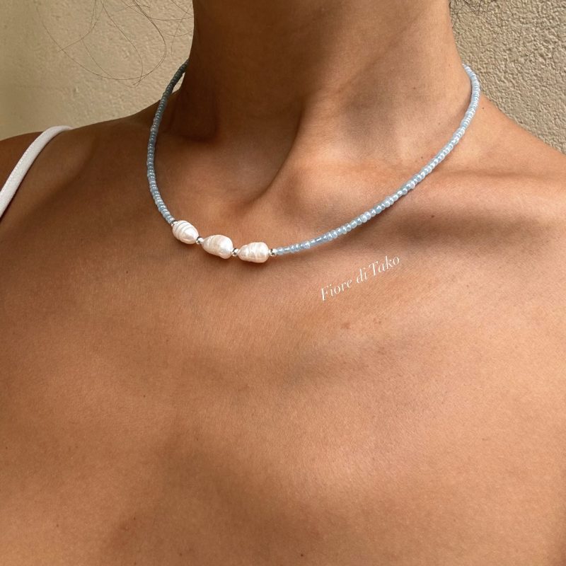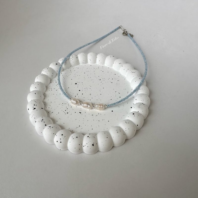 მასალა – ტონირებული ბისერი, მდინარის მარგალიტი, ანტიალერგიული შესაკრავი, ფერის დაცვით.
