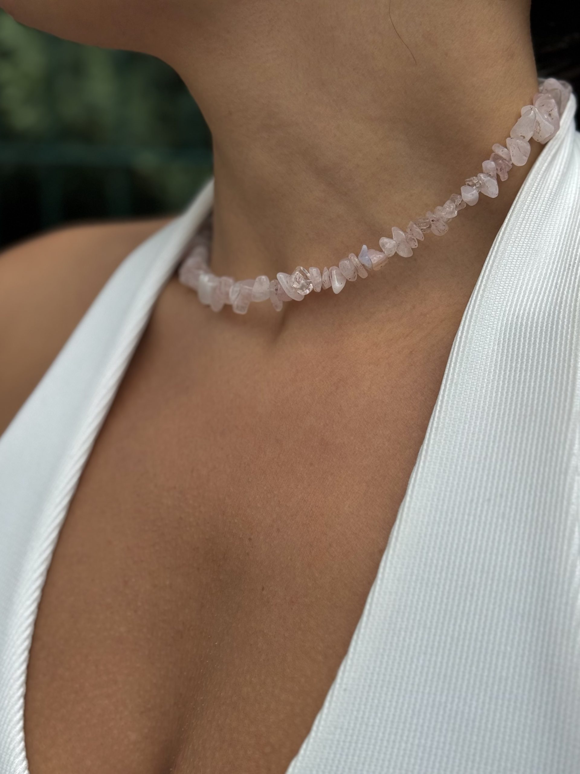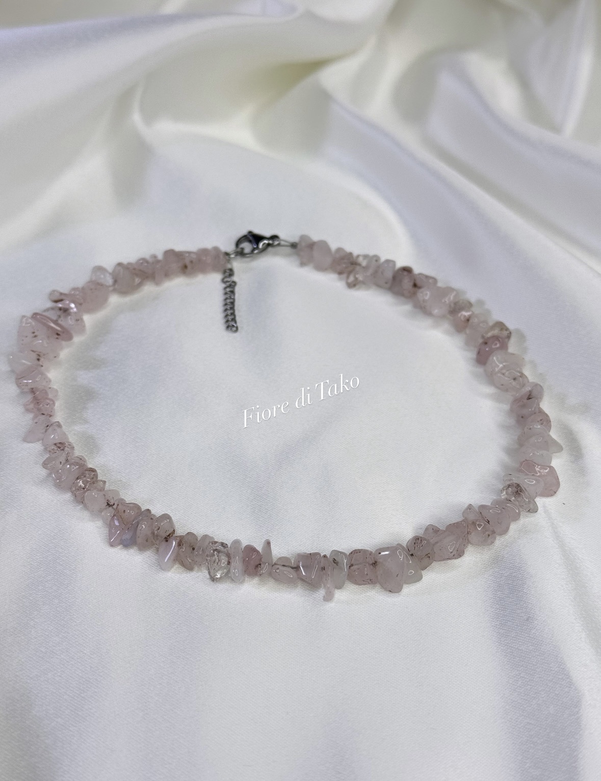 მასალა: ვარდისფერი კვარცი, ანტიალერგიული შესაკრავი, ფერის დაცვით