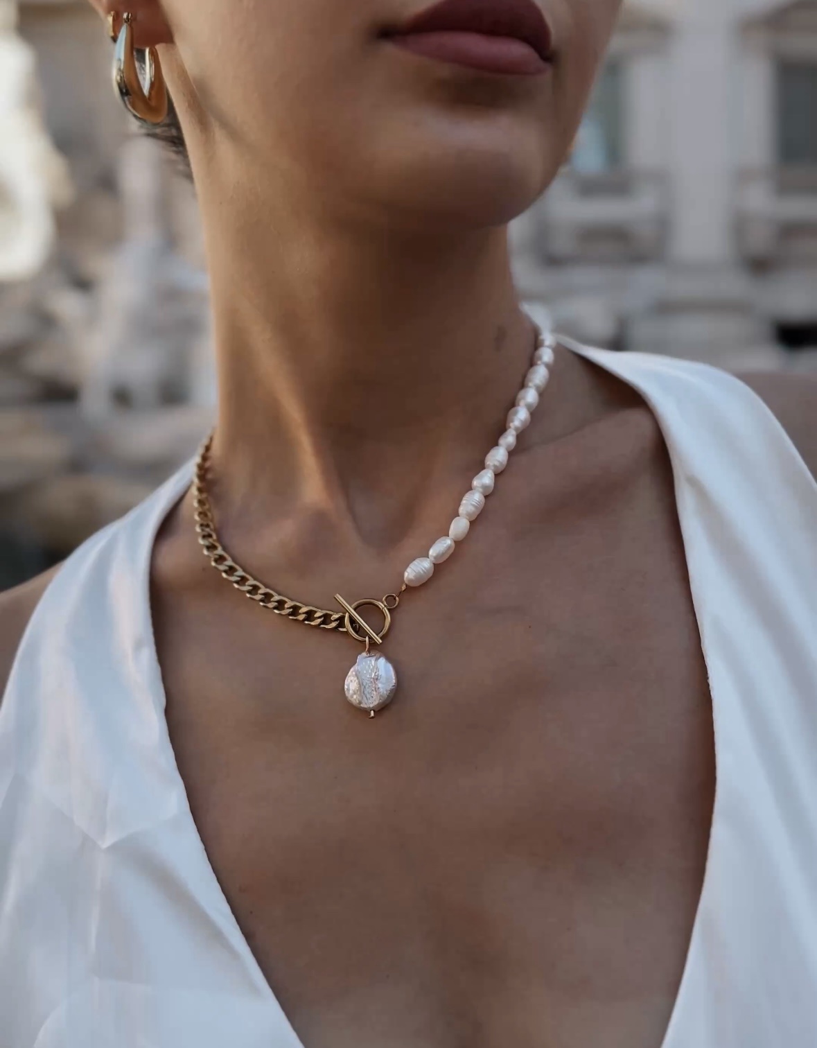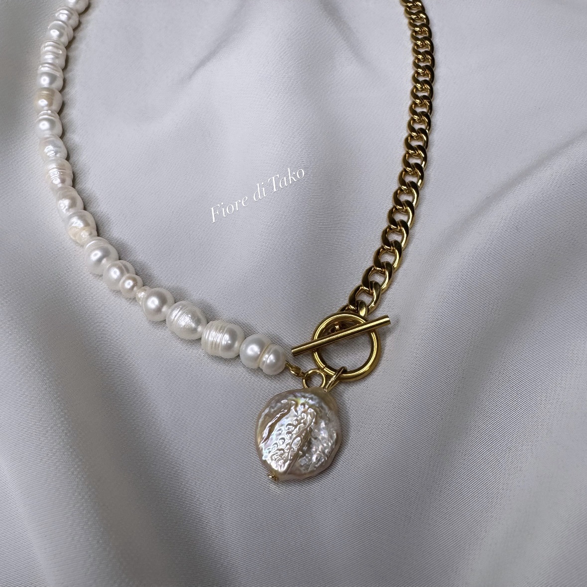 მასალა-მდინარის მარგალიტი, ბაროკოს მარგალიტი, ანტიალერგიული ჯაჭვი და შესაკრავი, ფერის დაცვით