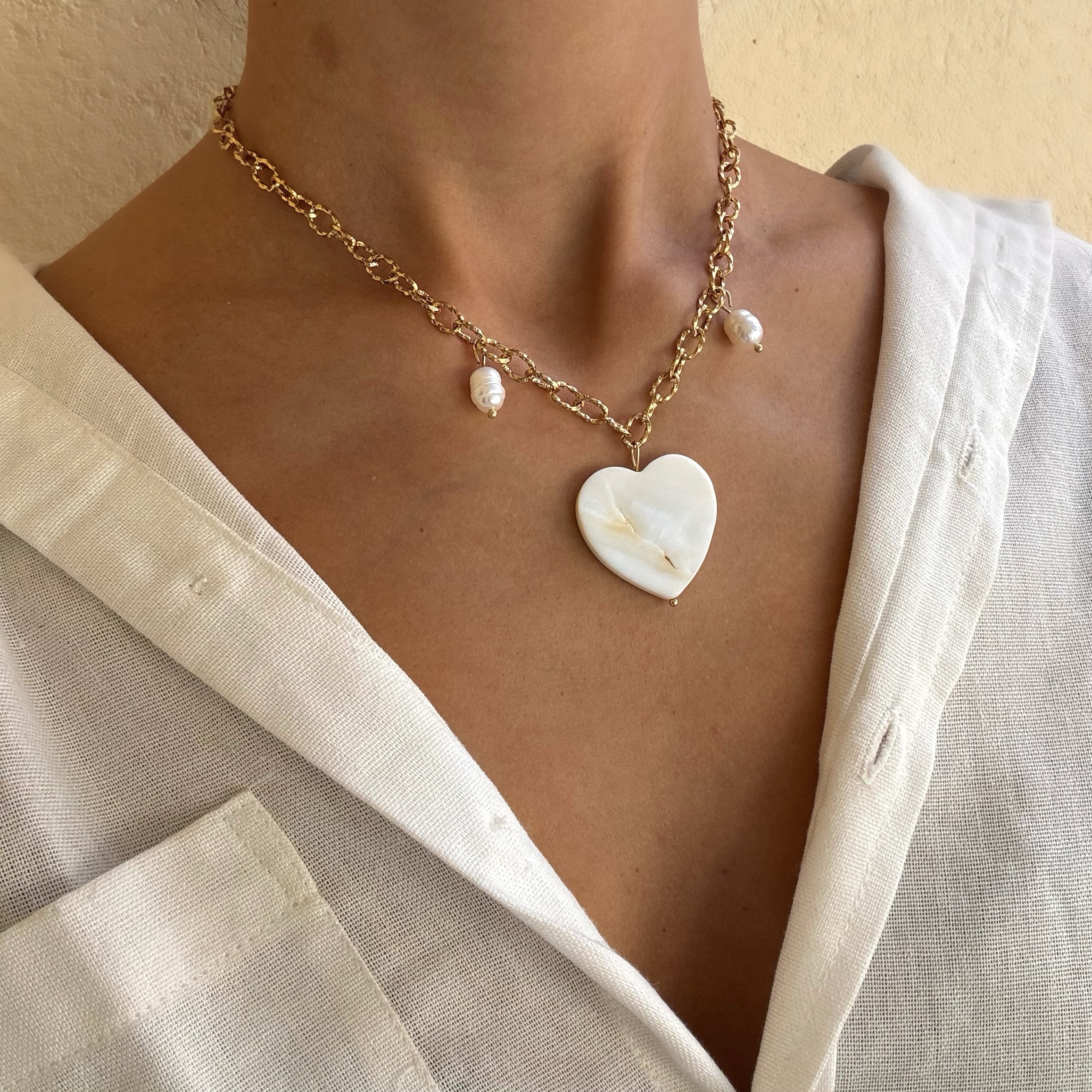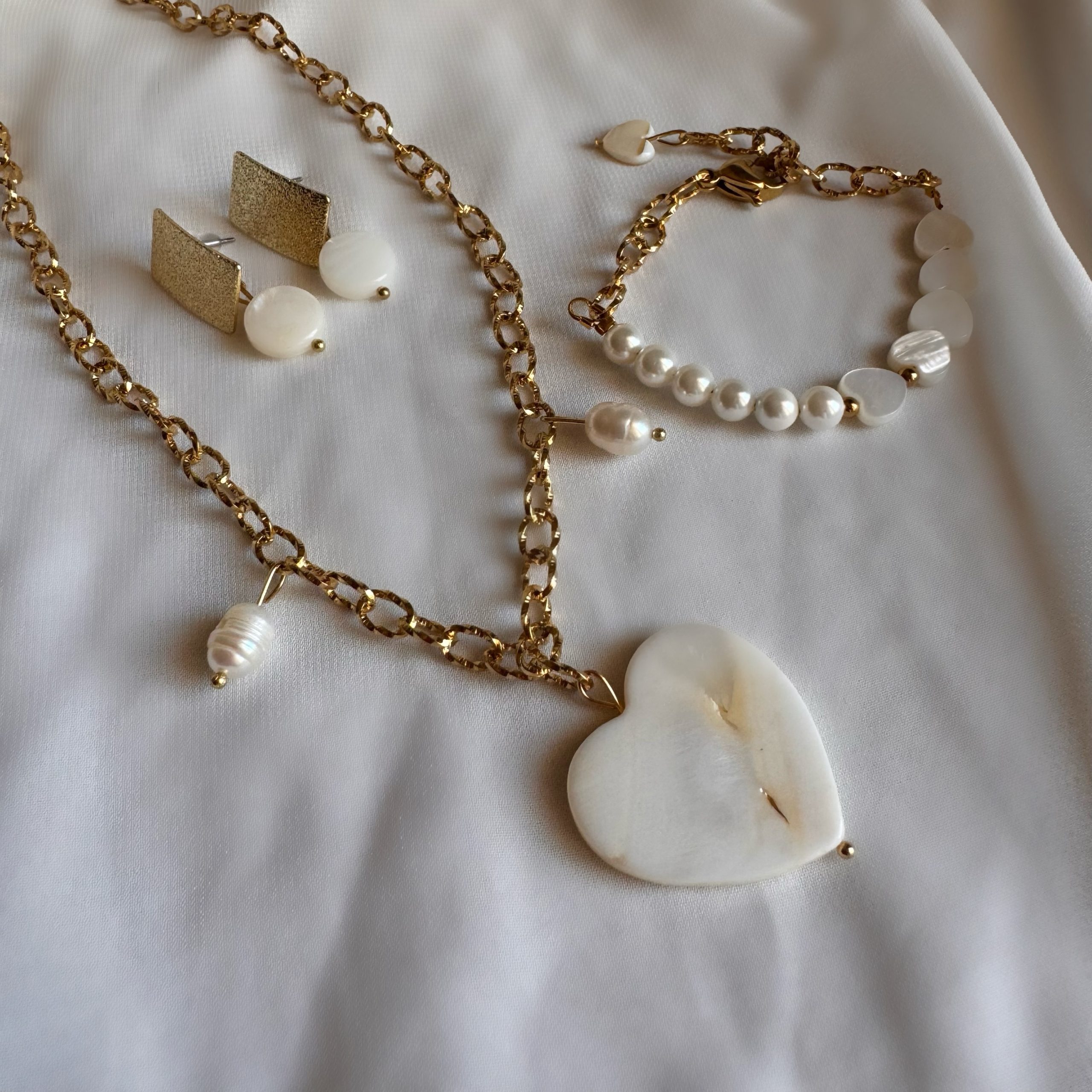 მასალა-მდინარის მარგალიტი, სადაფის გული, ანტიალერგიული ჯაჭვი და შესაკრავი, ფერის დაცვით